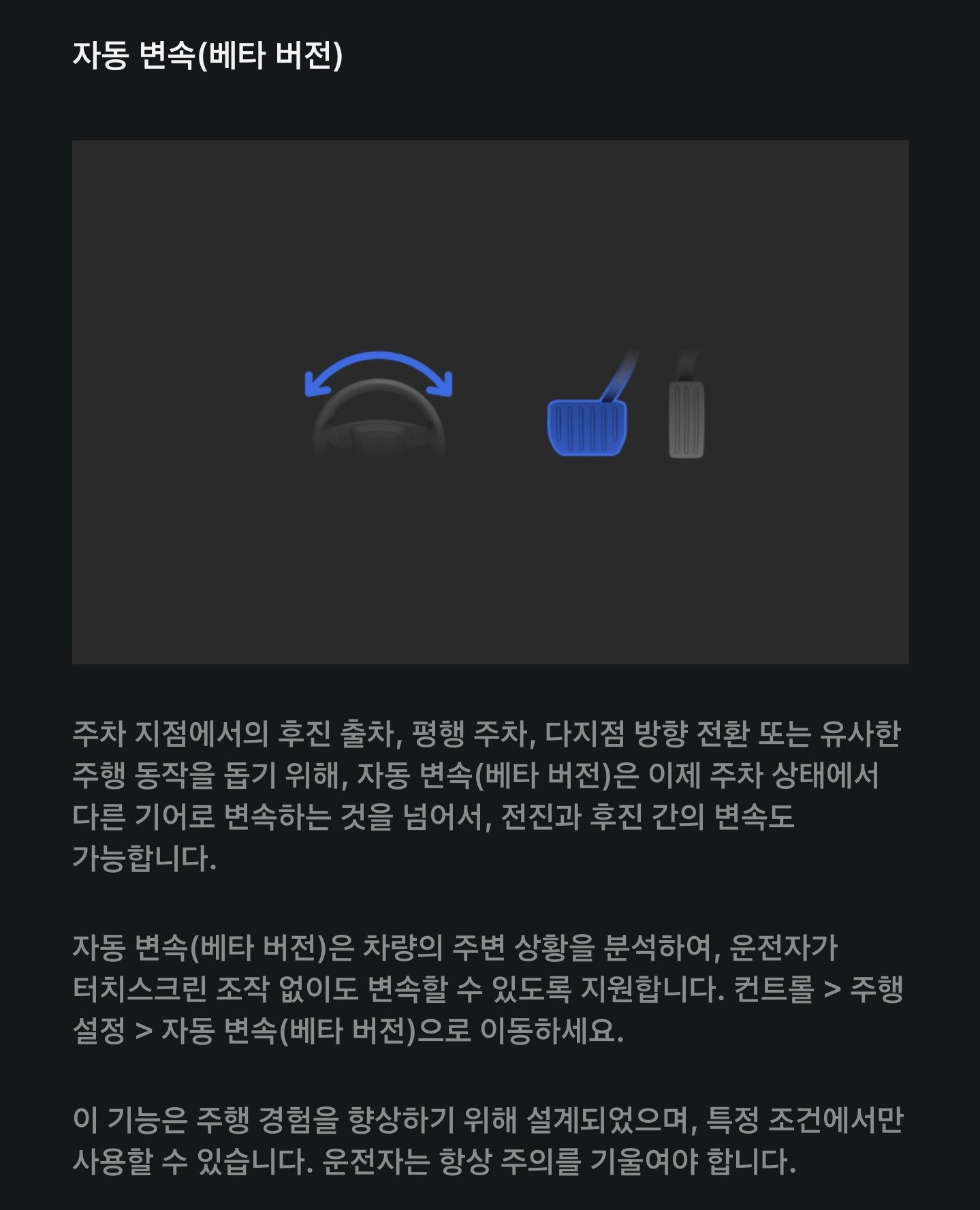 - 출차, 주차시 자동 변속 지원