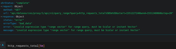 If you cannot create a graph with a range vector, how should you use a range vector? To do this, you need to use an aggregation function that aggregates the results of the range vector into a single instant vector.
