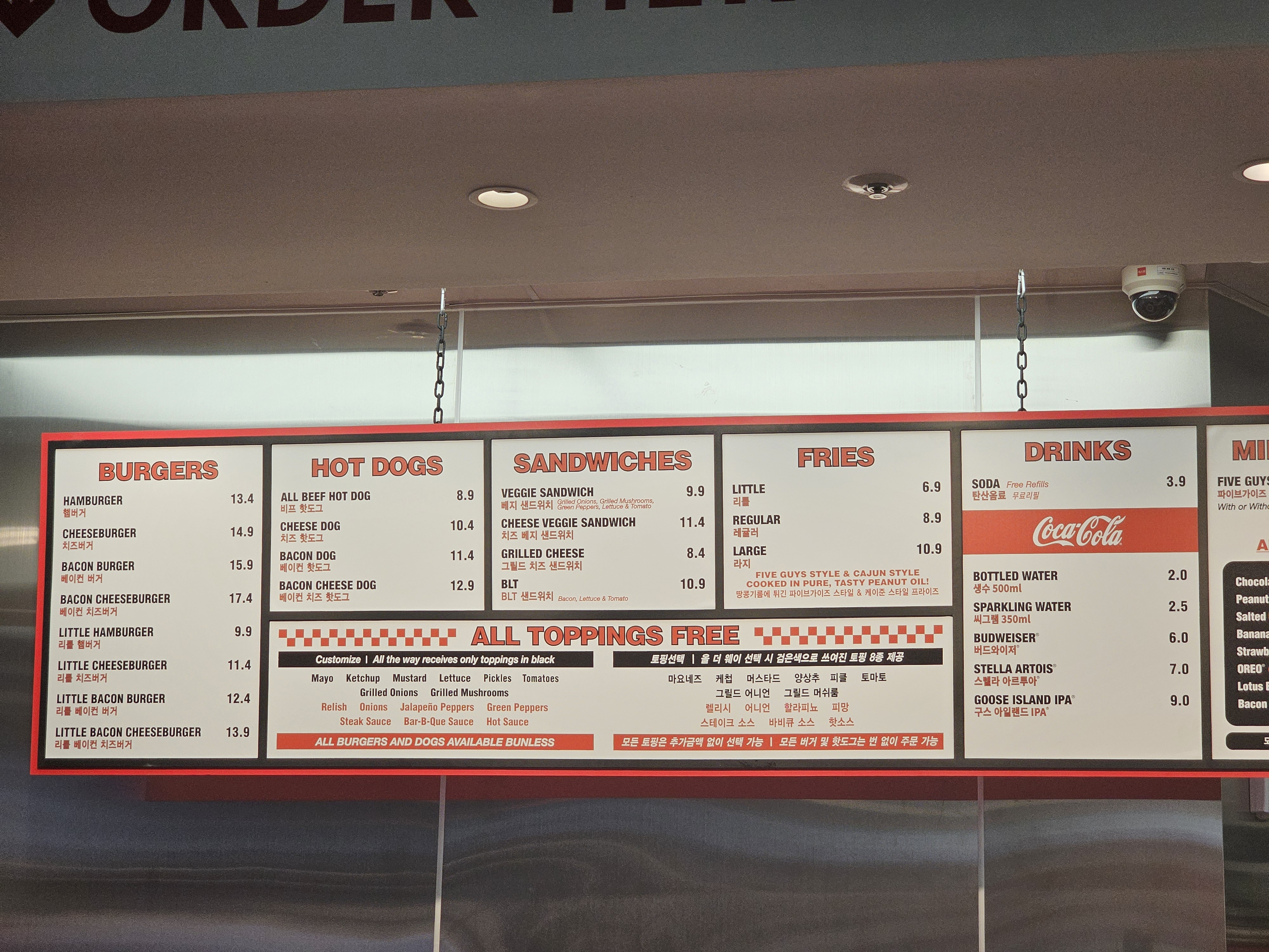 미국서는 파이브가이즈는 처음 한번 가보고 맛이 없어서 더 이상 가본적이 없었던거 같다. 수퍼두퍼버거가 제일 맛있었는데...