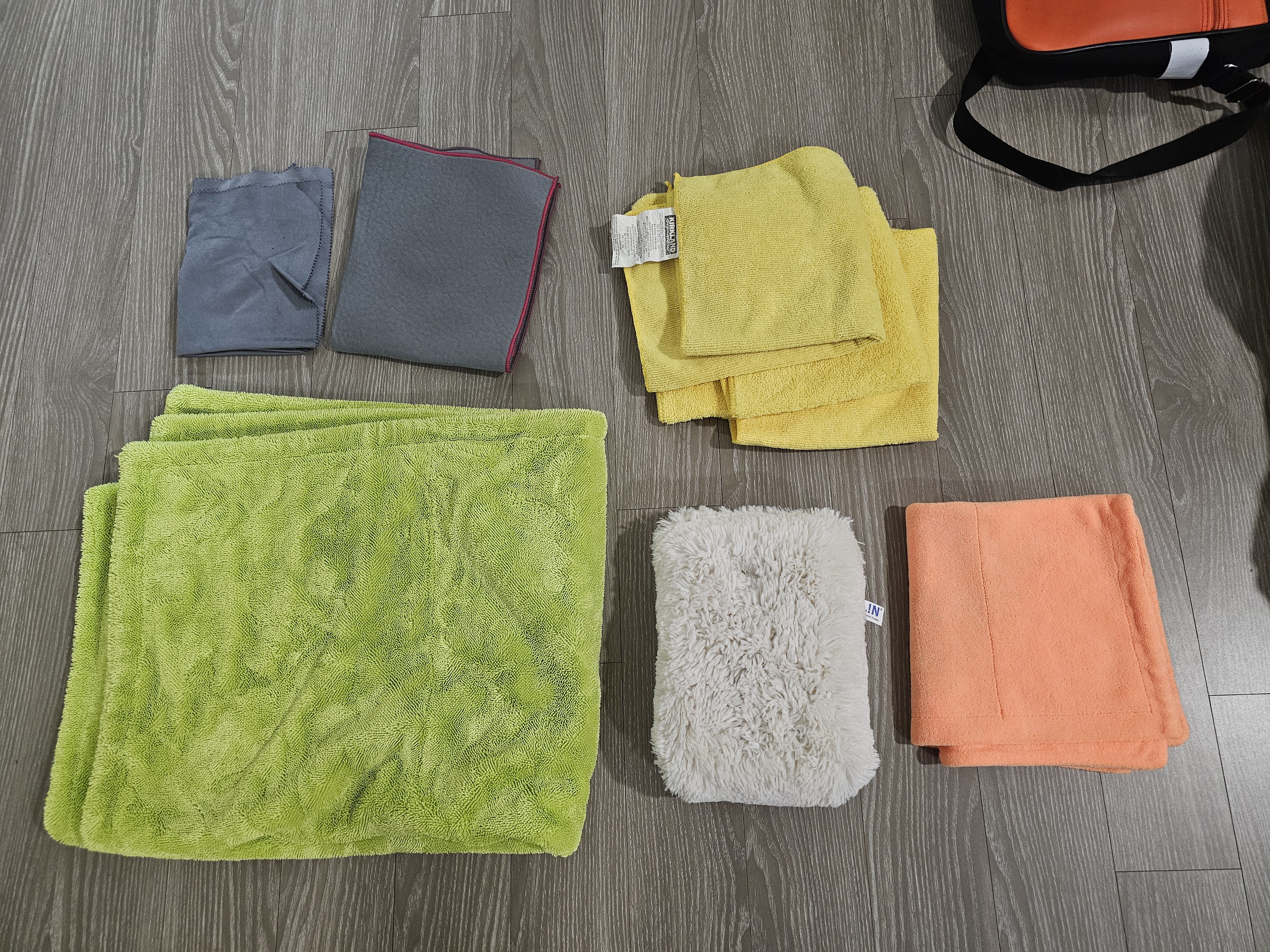 - 드라잉타월: 세차후 물기를 닦는데 사용한다. 보통 무겁고 크다. 흡수를 잘해야 하기 때문이다.