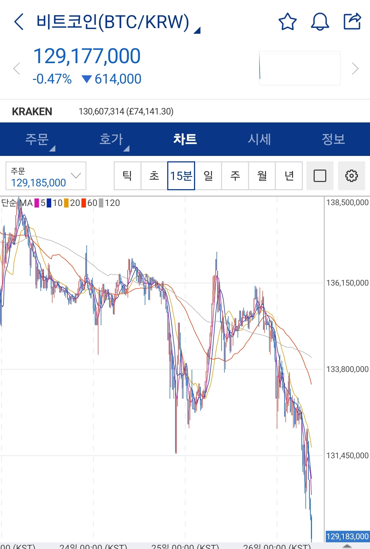 매매봇이 오늘 비트코인을 매도했다. 밤새 떨어지더니 매도조건에 걸린거 같다.