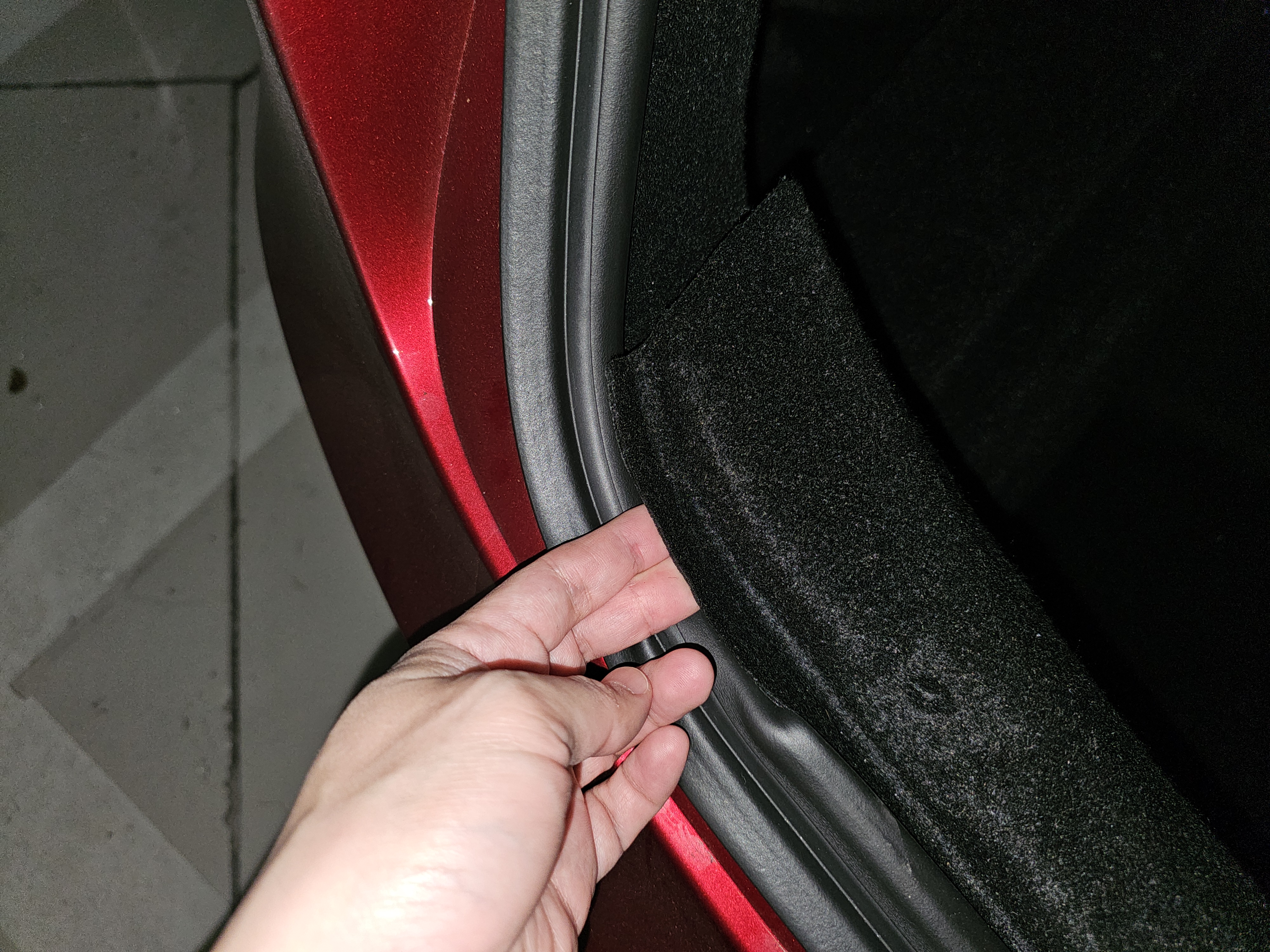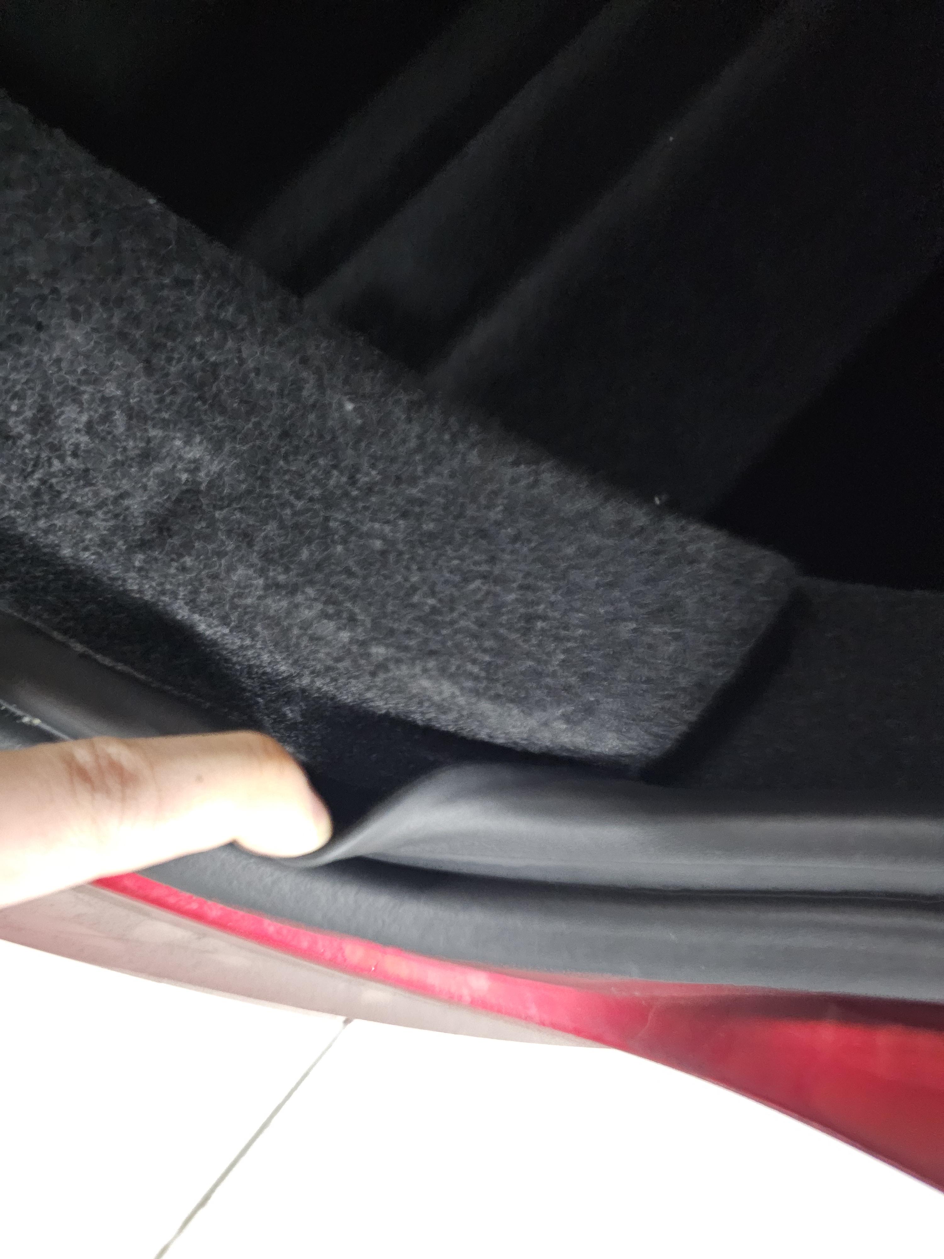 트렁크를 다시 열어봤을때 아직도 냄새가 좀 났다. 좀 더 자세히 보니 트렁크 하단에 틈이 있어서 이 틈을 다 닦는게 어려워보였다.
