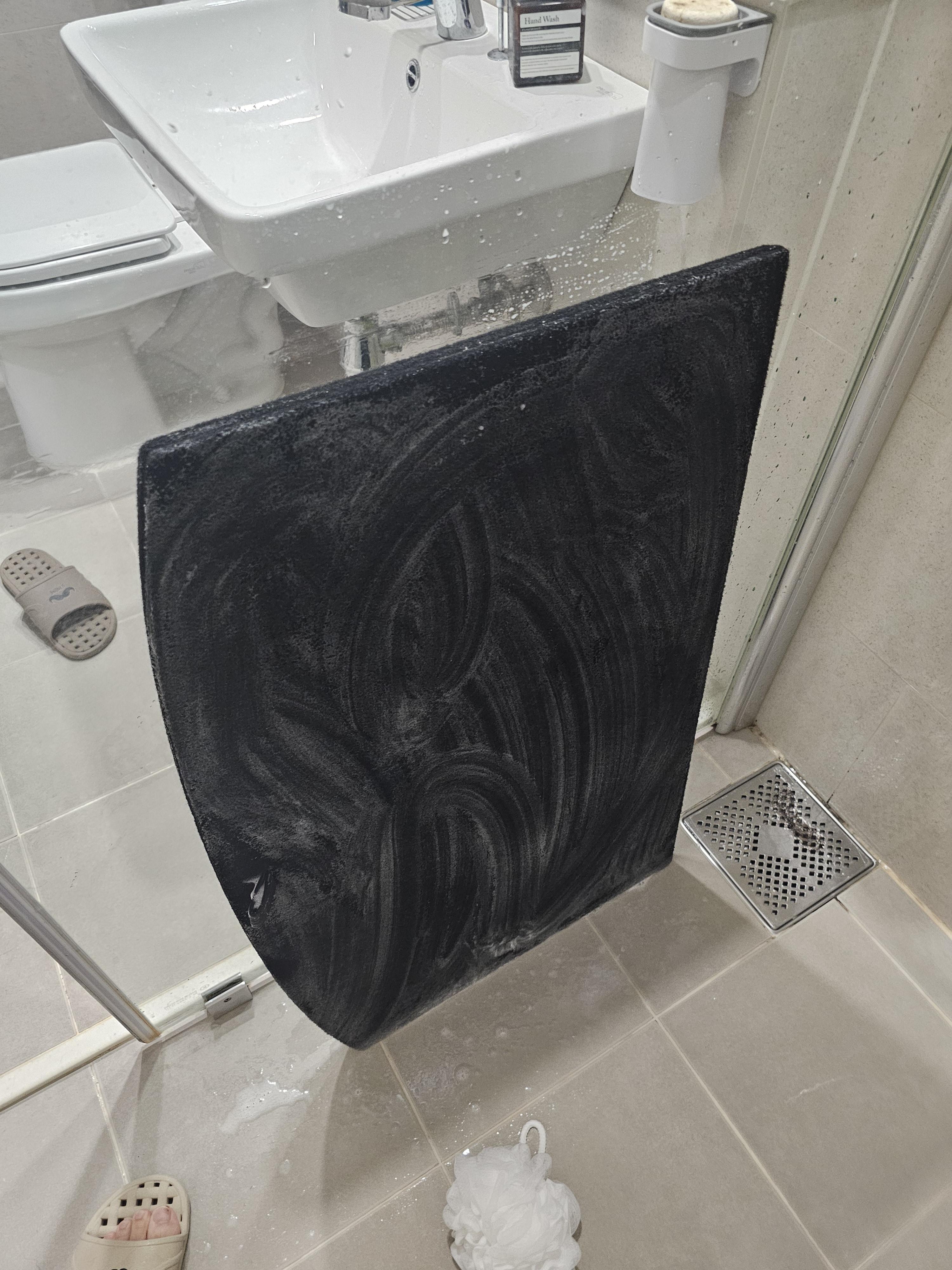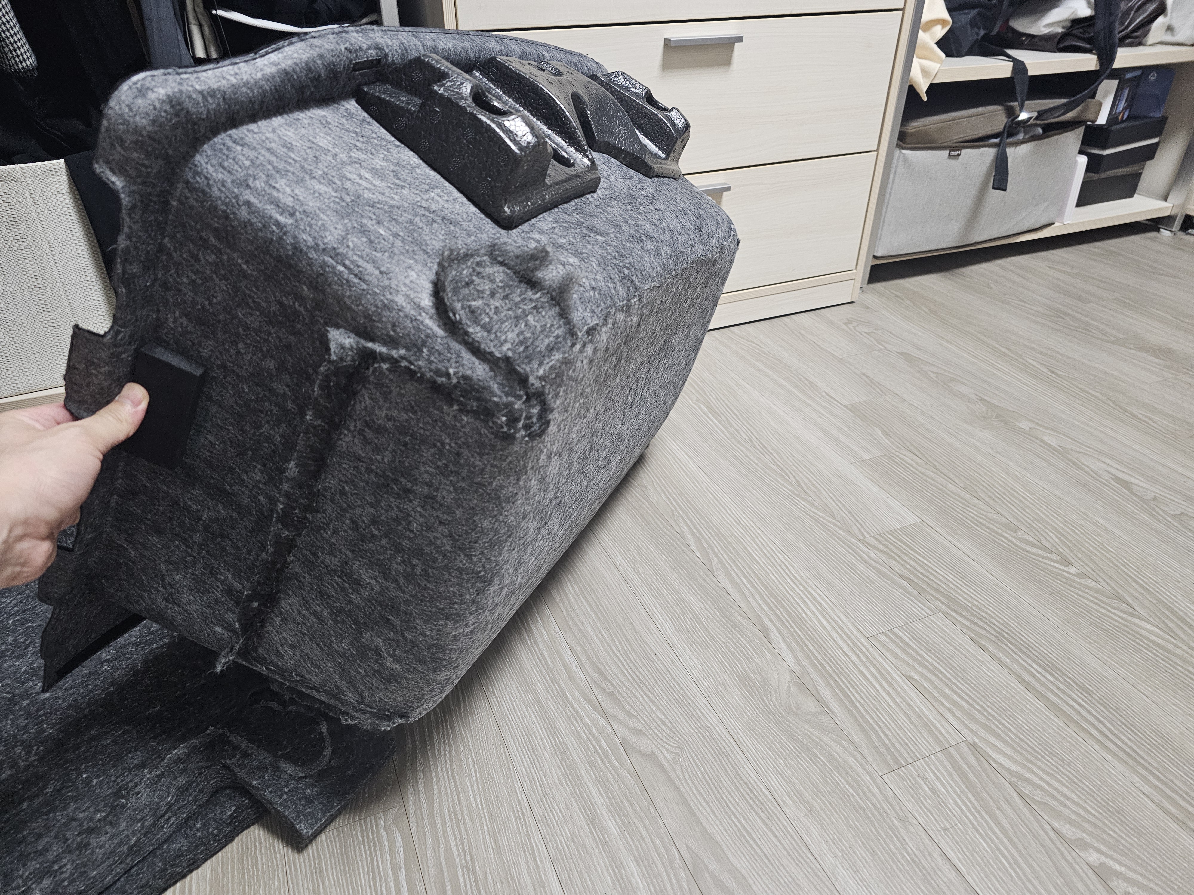집에 가지고 올라와서 보니까 Tub카펫은 세척이 불가능해 보였다. 하단에는 Felt라는 부직포가 크게 부착되어있었다. 흡음보다는 충격완화정도로만 사용되는 듯 보였다. 두께가 1.5cm는 되어보였기 때문에 이 젖은 부직포까지 다 세척하기는 어렵다고 판단이 들었다.