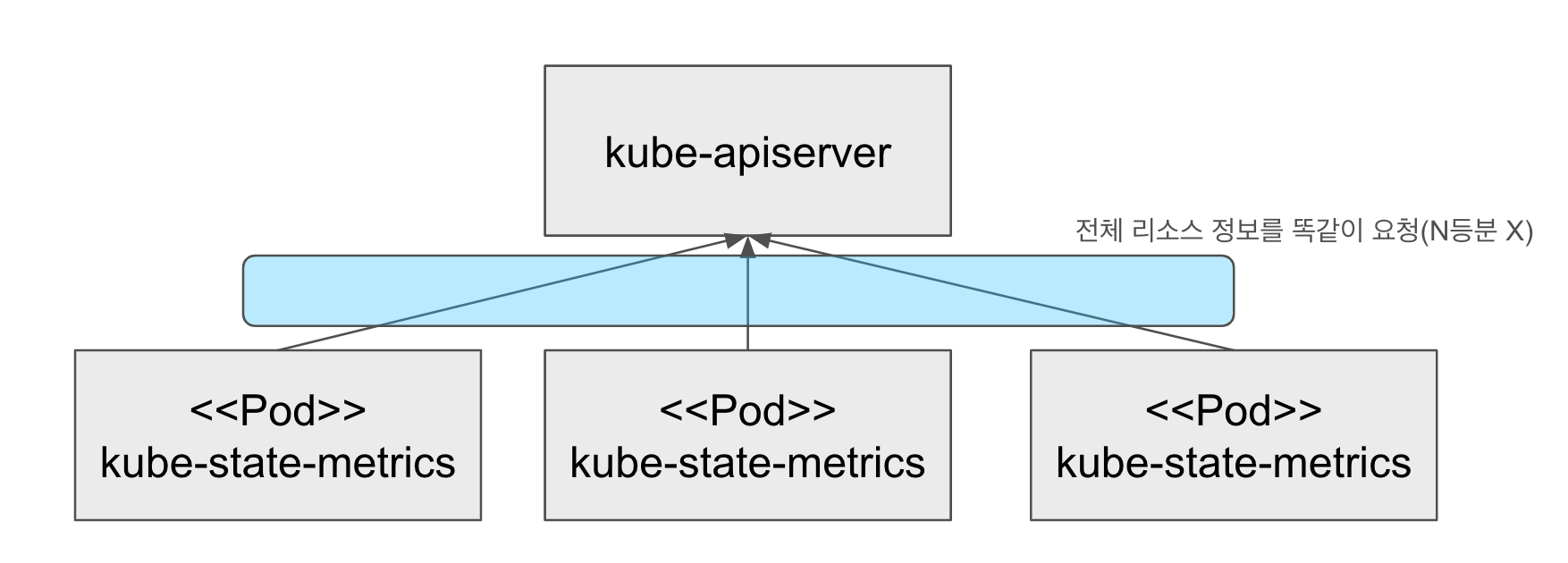 kube-state-metrics는 보통 Deployment 1개로만 배포되기 때문에 노드 또는 파드가 많이 늘어났을때 성능을 뒷받침하기 위해 스케일업을 하게 된다. 필요한 경우 노드 크기에 따른 auto scaler를 사이드카로 붙여서 자동으로 스케일업을 할수도 있다.
